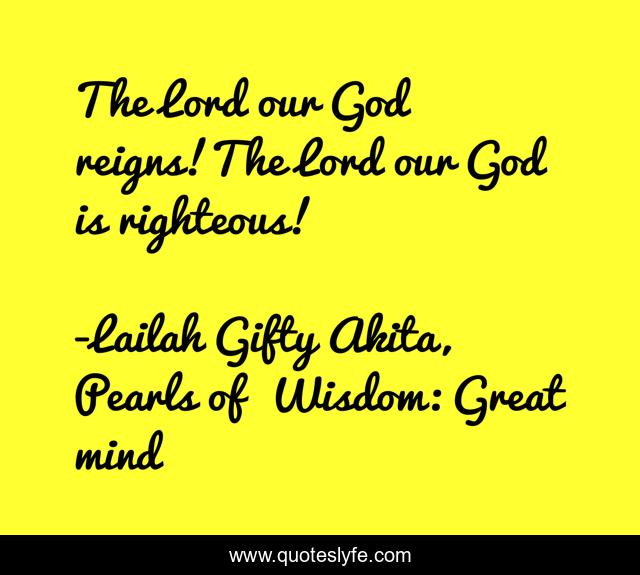 "Lailah Gifty Akita, Pearls of Wisdom: Great mind Quotes." Quoteslyfe.com, 2025. Tue. 09 Dec. 2025. <https://www.quoteslyfe.com/quote/The-Lord-our-God-reigns-The-Lord-79703>.