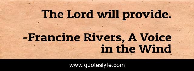 "Francine Rivers, A Voice in the Wind Quotes." Quoteslyfe.com, 2025. Fri. 05 Dec. 2025. <https://www.quoteslyfe.com/quote/The-Lord-will-provide-84411>.