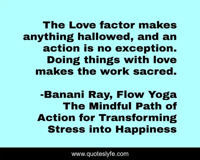 "Banani Ray, Flow Yoga The Mindful Path of Action for Transforming Stress into Happiness Quotes." Quoteslyfe.com, 2025. Tue. 09 Dec. 2025. <https://www.quoteslyfe.com/quote/The-Love-factor-makes-anything-hallowed-and-37784>.