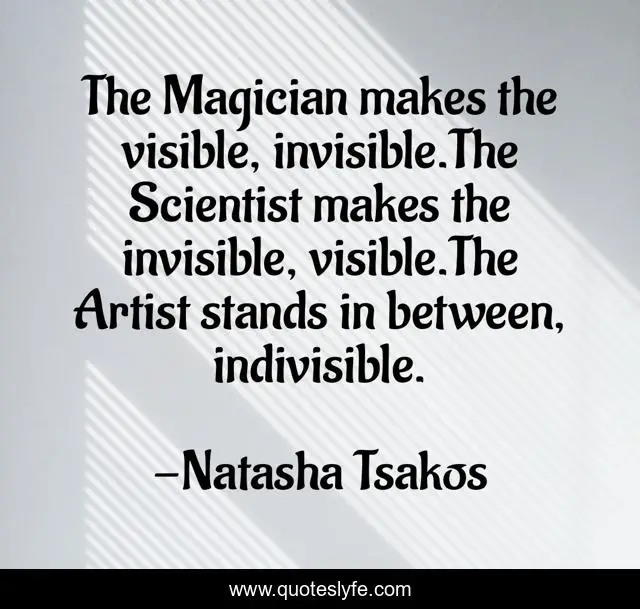 "Natasha Tsakos Quotes." Quoteslyfe.com, 2025. Sat. 06 Dec. 2025. <https://www.quoteslyfe.com/quote/The-Magician-makes-the-visible-invisible-The-42440>.