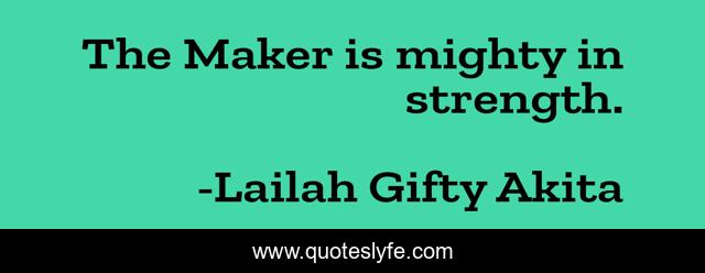 "Lailah Gifty Akita Quotes." Quoteslyfe.com, 2025. Fri. 05 Dec. 2025. <https://www.quoteslyfe.com/quote/The-Maker-is-mighty-in-strength-84769>.