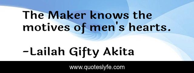 "Lailah Gifty Akita Quotes." Quoteslyfe.com, 2025. Fri. 05 Dec. 2025. <https://www.quoteslyfe.com/quote/The-Maker-knows-the-motives-of-men-130133>.
