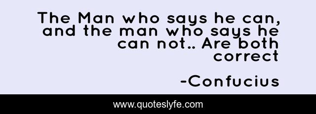 This page presents the quote "The Man who says he can, and the man who says he can not.. Are both correct". Author of this quote is Confucius. This quote is about enthusiasm, inspirational,.