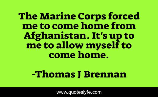 This page presents the quote "The Marine Corps forced me to come home from Afghanistan. It's up to me to allow myself to come home.". Author of this quote is Thomas J Brennan. This quote is about military, veterans, memoir, war,.