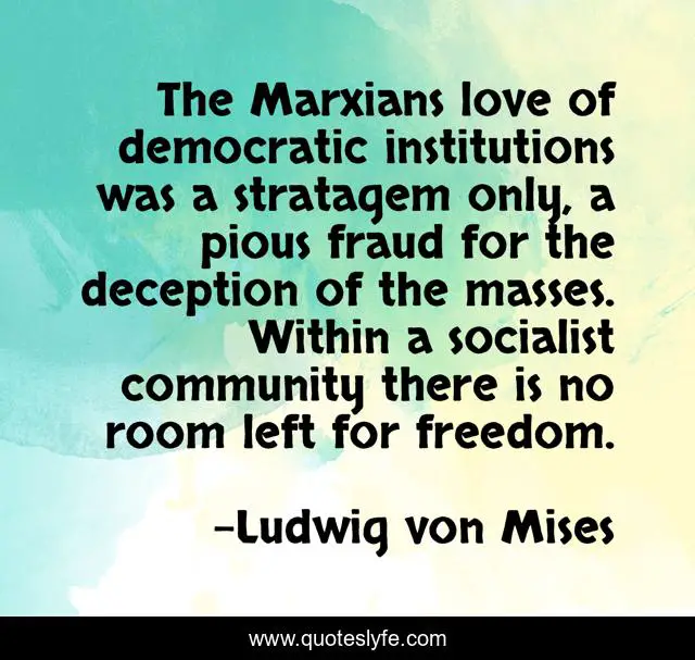 "Ludwig von Mises Quotes." Quoteslyfe.com, 2025. Tue. 09 Dec. 2025. <https://www.quoteslyfe.com/quote/The-Marxians-love-of-democratic-institutions-was-102279>.