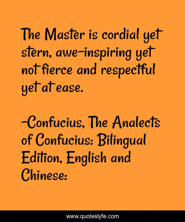 "Confucius, The Analects of Confucius: Bilingual Edition, English and Chinese: 論語 Quotes." Quoteslyfe.com, 2025. Fri. 05 Dec. 2025. <https://www.quoteslyfe.com/quote/The-Master-is-cordial-yet-stern-awe-173586>.