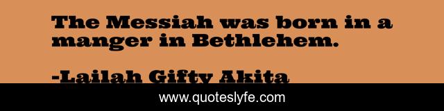 This page presents the quote "The Messiah was born in a manger in Bethlehem.". Author of this quote is Lailah Gifty Akita. This quote is about christmans, birth-of-christ, messiah, christianity,.
