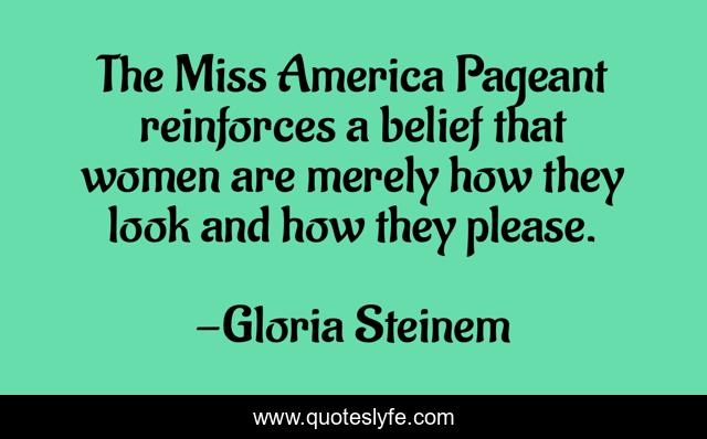 "Gloria Steinem Quotes." Quoteslyfe.com, 2025. Fri. 05 Dec. 2025. <https://www.quoteslyfe.com/quote/The-Miss-America-Pageant-reinforces-a-belief-302489>.