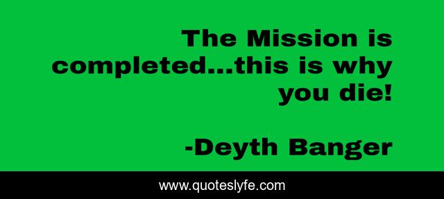 This page presents the quote "The Mission is completed...this is why you die!". Author of this quote is Deyth Banger. This quote is about die, completed, complete, mission,.