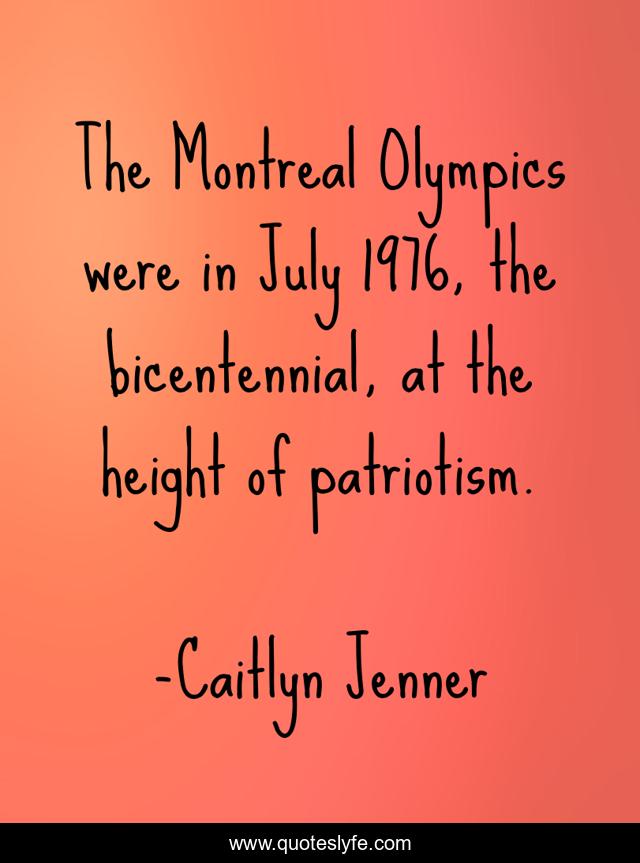 This page presents the quote "The Montreal Olympics were in July 1976, the bicentennial, at the height of patriotism.". Author of this quote is Caitlyn Jenner. This quote is about july, olympics, height,.