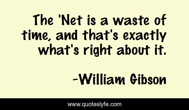 "William Gibson Quotes." Quoteslyfe.com, 2025. Sat. 06 Dec. 2025. <https://www.quoteslyfe.com/quote/The-Net-is-a-waste-of-time-243447>.