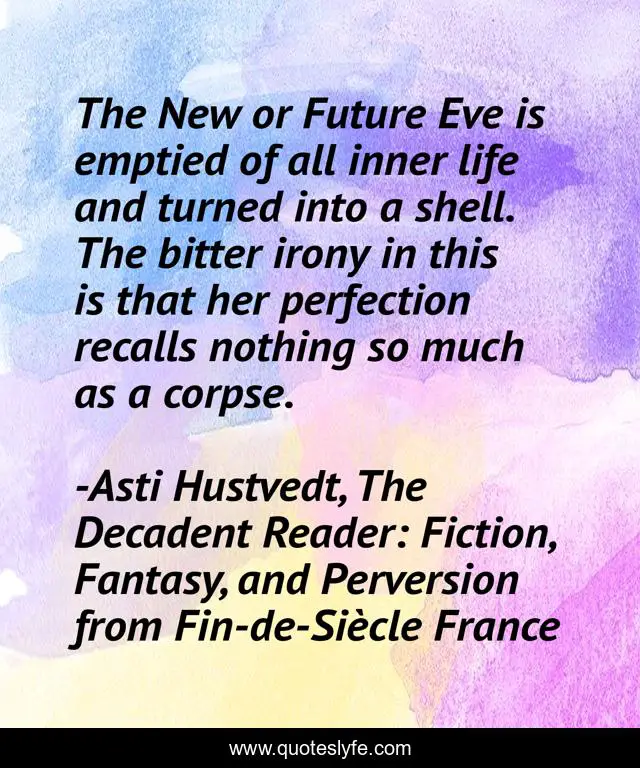 "Asti Hustvedt, The Decadent Reader: Fiction, Fantasy, and Perversion from Fin-de-Siècle France Quotes." Quoteslyfe.com, 2025. Sat. 06 Dec. 2025. <https://www.quoteslyfe.com/quote/The-New-or-Future-Eve-is-emptied-177216>.