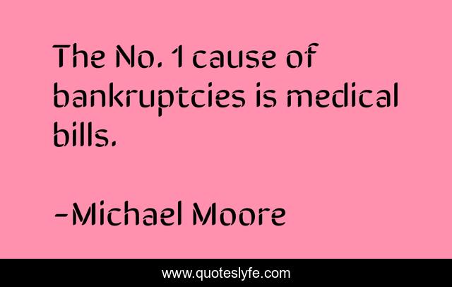 This page presents the quote "The No. 1 cause of bankruptcies is medical bills.". Author of this quote is Michael Moore. This quote is about bills, cause,.