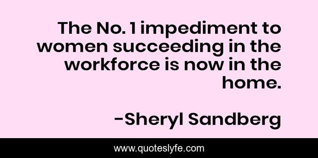 This page presents the quote "The No. 1 impediment to women succeeding in the workforce is now in the home.". Author of this quote is Sheryl Sandberg. This quote is about home, now, succeeding,.