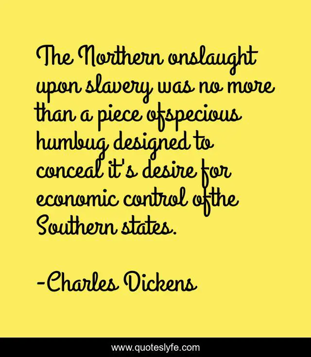 "Charles Dickens Quotes." Quoteslyfe.com, 2025. Mon. 08 Dec. 2025. <https://www.quoteslyfe.com/quote/The-Northern-onslaught-upon-slavery-was-no-52794>.