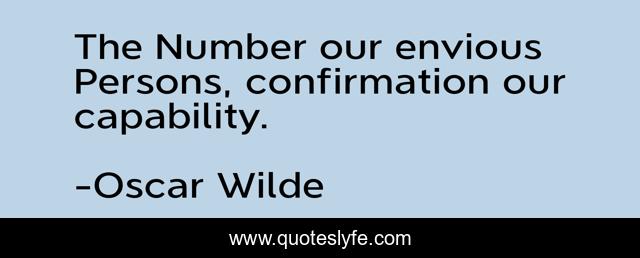 This page presents the quote "The Number our envious Persons, confirmation our capability.". Author of this quote is Oscar Wilde. This quote is about capability, envious, envy, life,.