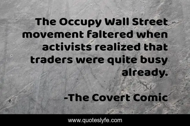 This page presents the quote "The Occupy Wall Street movement faltered when activists realized that traders were quite busy already.". Author of this quote is The Covert Comic. This quote is about funny, comedy, humor, quotes,.