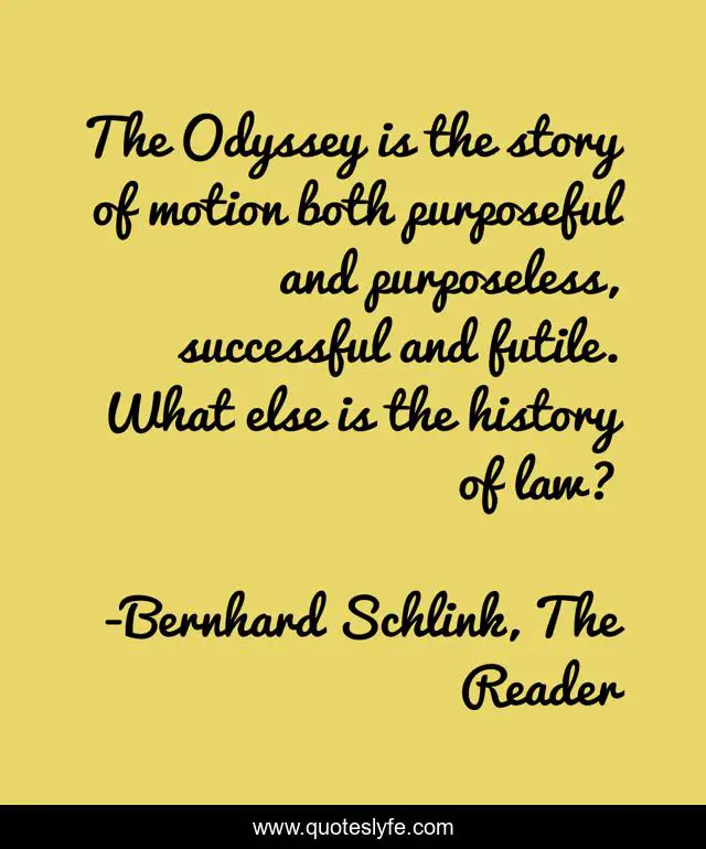 This page presents the quote "The Odyssey is the story of motion both purposeful and purposeless, successful and futile. What else is the history of law?". Author of this quote is Bernhard Schlink, The Reader. This quote is about law, odyssey, reader,.