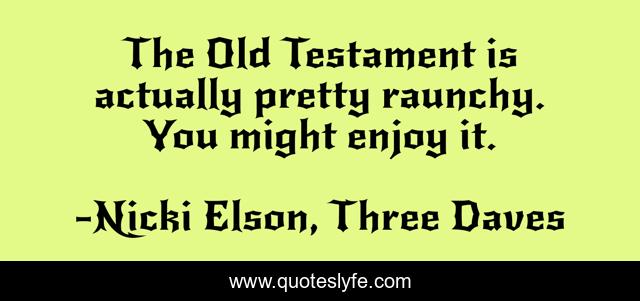 This page presents the quote "The Old Testament is actually pretty raunchy. You might enjoy it.". Author of this quote is Nicki Elson, Three Daves. This quote is about bible, humor,.