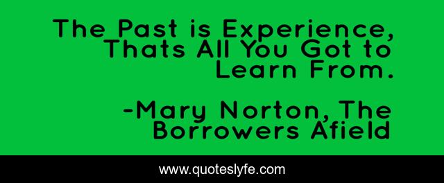 This page presents the quote "The Past is Experience, Thats All You Got to Learn From.". Author of this quote is Mary Norton, The Borrowers Afield. This quote is about past, experience,.