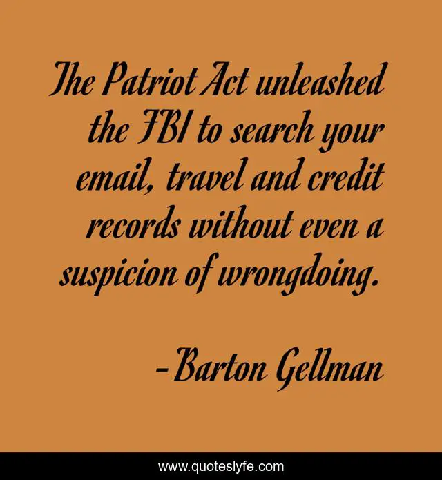 "Barton Gellman Quotes." Quoteslyfe.com, 2025. Sat. 06 Dec. 2025. <https://www.quoteslyfe.com/quote/The-Patriot-Act-unleashed-the-FBI-to-311866>.