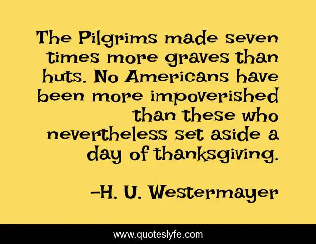 This page presents the quote "The Pilgrims made seven times more graves than huts. No Americans have been more impoverished than these who nevertheless set aside a day of thanksgiving.". Author of this quote is H. U. Westermayer. .