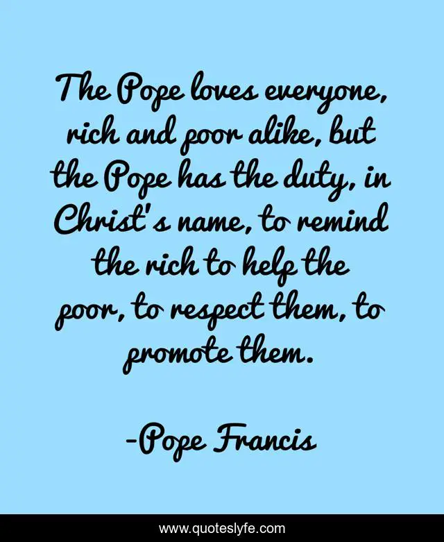 "Pope Francis Quotes." Quoteslyfe.com, 2025. Fri. 05 Dec. 2025. <https://www.quoteslyfe.com/quote/The-Pope-loves-everyone-rich-and-poor-283362>.