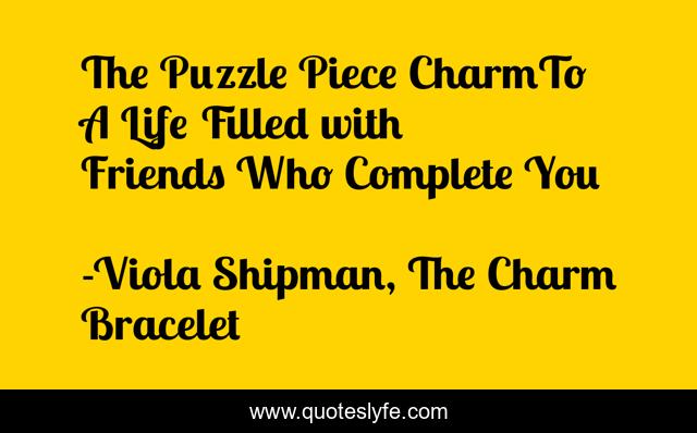 "Viola Shipman, The Charm Bracelet Quotes." Quoteslyfe.com, 2025. Fri. 05 Dec. 2025. <https://www.quoteslyfe.com/quote/The-Puzzle-Piece-CharmTo-A-Life-Filled-126788>.