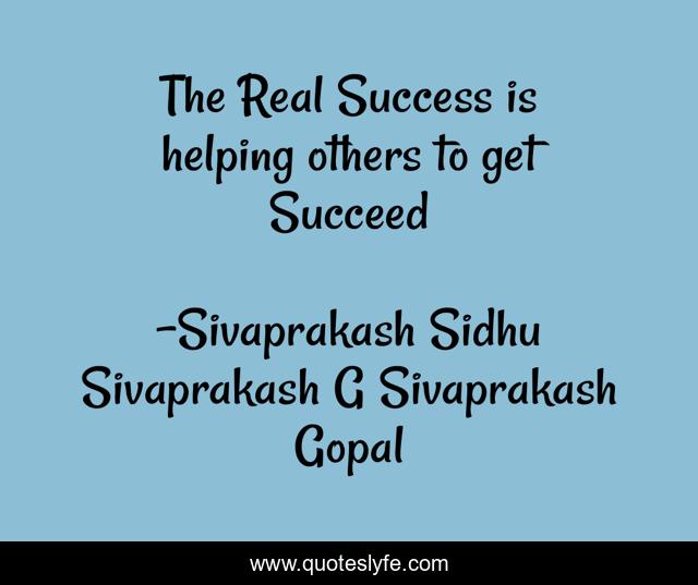 "Sivaprakash Sidhu Sivaprakash G Sivaprakash Gopal Quotes." Quoteslyfe.com, 2025. Fri. 05 Dec. 2025. <https://www.quoteslyfe.com/quote/The-Real-Success-is-helping-others-to-109639>.