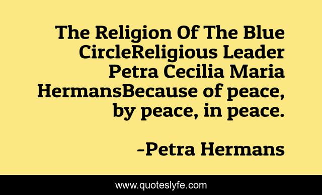 This page presents the quote "The Religion Of The Blue CircleReligious Leader Petra Cecilia Maria HermansBecause of peace, by peace, in peace.". Author of this quote is Petra Hermans. .