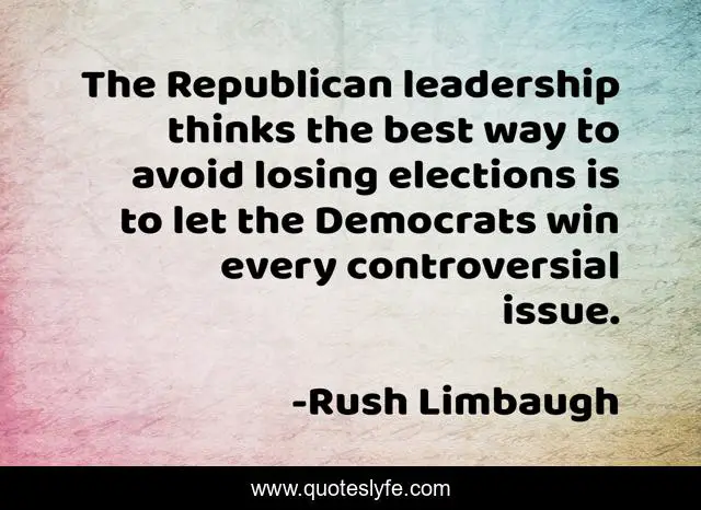 This page presents the quote "The Republican leadership thinks the best way to avoid losing elections is to let the Democrats win every controversial issue.". Author of this quote is Rush Limbaugh. This quote is about losing, win, best,.