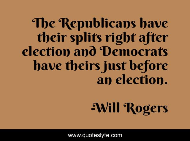 This page presents the quote "The Republicans have their splits right after election and Democrats have theirs just before an election.". Author of this quote is Will Rogers. .