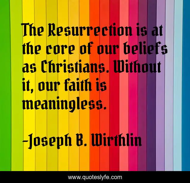 This page presents the quote "The Resurrection is at the core of our beliefs as Christians. Without it, our faith is meaningless.". Author of this quote is Joseph B. Wirthlin. This quote is about resurrection, beliefs,.