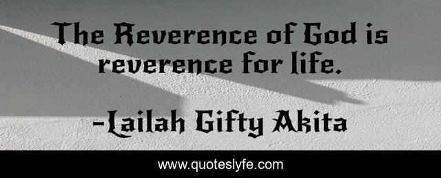 This page presents the quote "The Reverence of God is reverence for life.". Author of this quote is Lailah Gifty Akita. This quote is about god, inspiring, life, wise-words, reverend,.