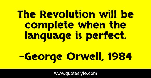 This page presents the quote "The Revolution will be complete when the language is perfect.". Author of this quote is George Orwell, 1984. This quote is about 1984, socialism, george-orwell, language, totalitarianism,.