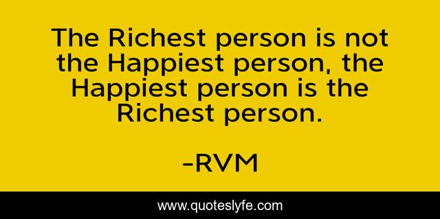 This page presents the quote "The Richest person is not the Happiest person, the Happiest person is the Richest person.". Author of this quote is RVM. This quote is about motivation, inspiration,.