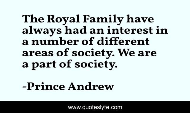 This page presents the quote "The Royal Family have always had an interest in a number of different areas of society. We are a part of society.". Author of this quote is Prince Andrew. This quote is about society, number, interest,.