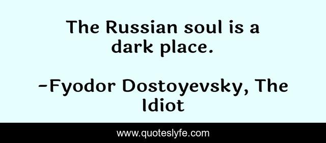 This page presents the quote "The Russian soul is a dark place.". Author of this quote is Fyodor Dostoyevsky, The Idiot. This quote is about darkness, russians, souls,.