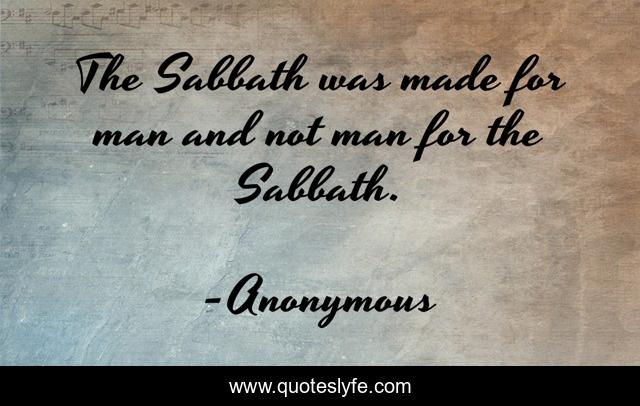 This page presents the quote "The Sabbath was made for man and not man for the Sabbath.". Author of this quote is Anonymous. .