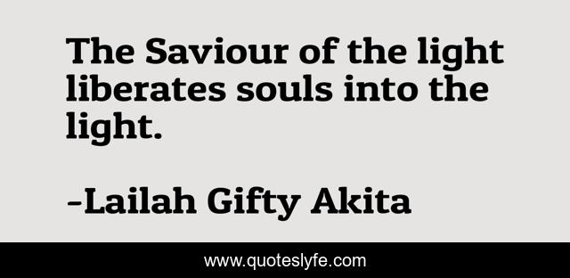 This page presents the quote "The Saviour of the light liberates souls into the light.". Author of this quote is Lailah Gifty Akita. This quote is about jesus-christ, spiritual, christian, saved-souls, light, liberation,.