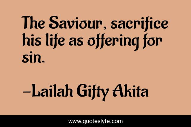 "Lailah Gifty Akita Quotes." Quoteslyfe.com, 2025. Tue. 09 Dec. 2025. <https://www.quoteslyfe.com/quote/The-Saviour-sacrifice-his-life-as-offering-19838>.