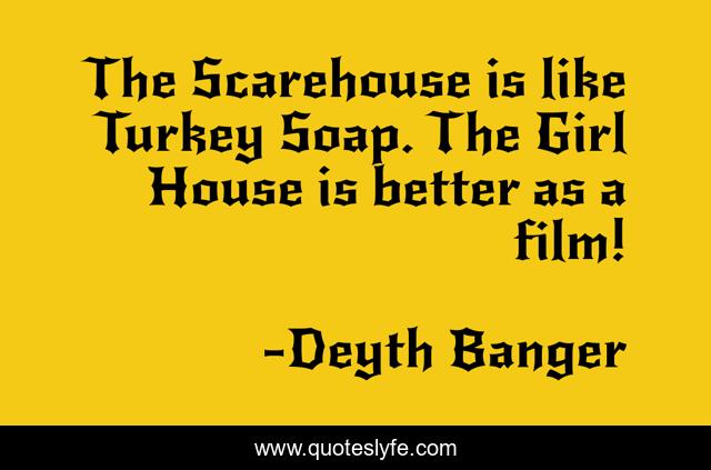 This page presents the quote "The Scarehouse is like Turkey Soap. The Girl House is better as a film!". Author of this quote is Deyth Banger. This quote is about turkey, soap, film,.
