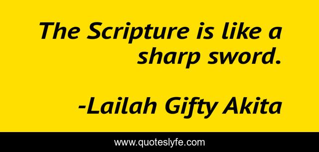 This page presents the quote "The Scripture is like a sharp sword.". Author of this quote is Lailah Gifty Akita. This quote is about christian, inspiring, scripture, sword, christianity,.