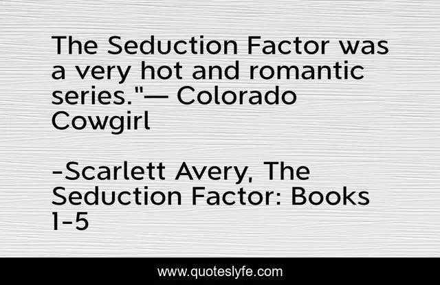 This page presents the quote "The Seduction Factor was a very hot and romantic series.”— Colorado Cowgirl". Author of this quote is Scarlett Avery, The Seduction Factor: Books 1-5. This quote is about billionaire-romance, erotic-romance, alpha-males, romance-novel-books, novellas, romance, boxset, sizzling-hot, seduction-factor,.