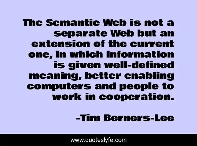 "Tim Berners-Lee Quotes." Quoteslyfe.com, 2025. Fri. 05 Dec. 2025. <https://www.quoteslyfe.com/quote/The-Semantic-Web-is-not-a-separate-289818>.