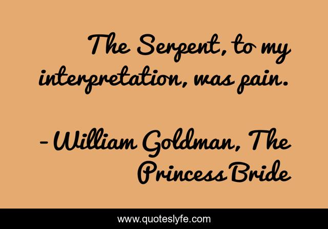 "William Goldman, The Princess Bride Quotes." Quoteslyfe.com, 2025. Fri. 05 Dec. 2025. <https://www.quoteslyfe.com/quote/The-Serpent-to-my-interpretation-was-pain-62152>.