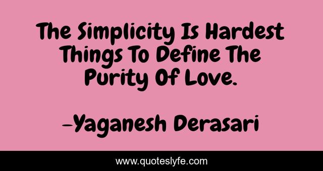 This page presents the quote "The Simplicity Is Hardest Things To Define The Purity Of Love.". Author of this quote is Yaganesh Derasari. This quote is about simplicity, purity-of-heart, love, affection,.