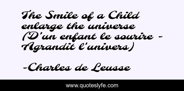 This page presents the quote "The Smile of a Child enlarge the universe (D'un enfant le sourire - Agrandit l'univers)". Author of this quote is Charles de Leusse. This quote is about sourire, universe, univers, enfant, child, smile, happiness,.