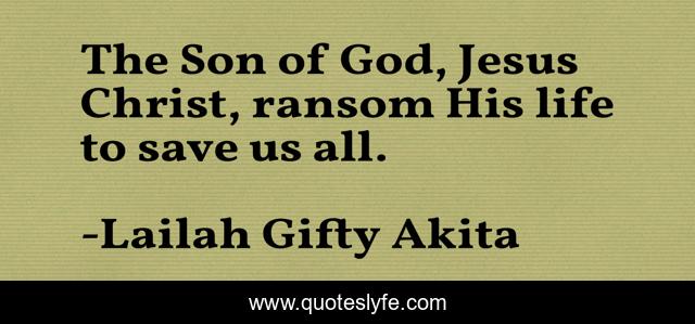 This page presents the quote "The Son of God, Jesus Christ, ransom His life to save us all.". Author of this quote is Lailah Gifty Akita. This quote is about spirituality, forgiveness, saved-souls, sin,.