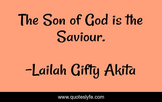 This page presents the quote "The Son of God is the Saviour.". Author of this quote is Lailah Gifty Akita. This quote is about saviour, faith, christian, god, inspiration,.